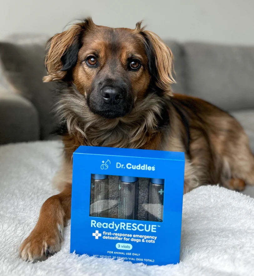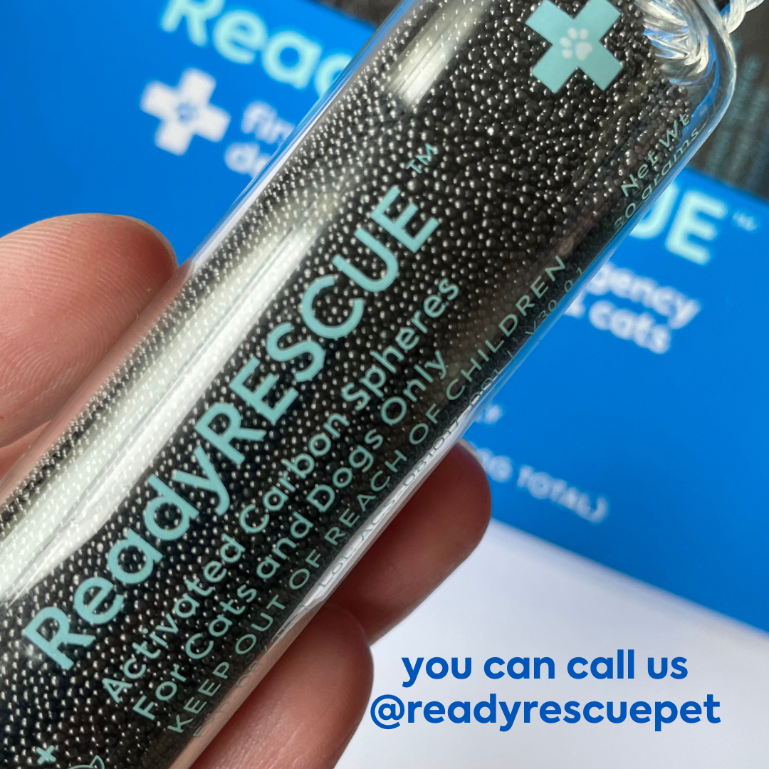 ReadyRESCUE™ is a first response detoxifier that you can administer at home while you’re investigating the toxin, calling the pet poison hotline, and if needed, driving into the vet. it uses advanced activated carbon spheres to actively absorb toxins immediately after an intoxication event and carry them safely through your pet’s body- and out the other end!