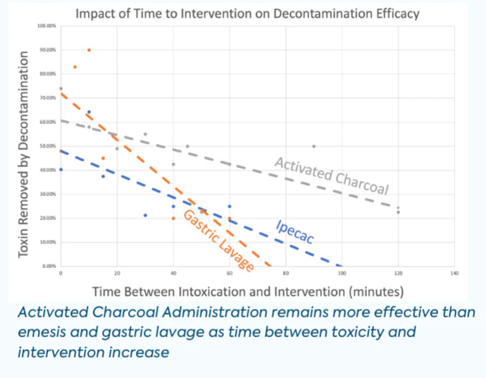 When compared to other methods used to treat intoxications, ReadyRESCUE™ is more effective than vomiting and stomach pumping at almost every time interval (as shown on graph).